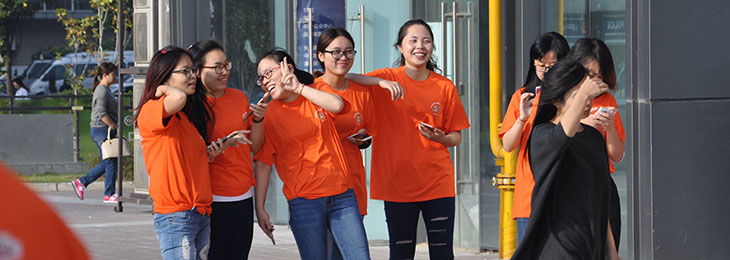 10月21日当天,来到公司楼下,先映入眼帘的是我们那鲜艳的司服,说实话我从来不穿那么艳的衣服,可是那时的我觉得那时如此的美丽,充满着阳光与朝气。