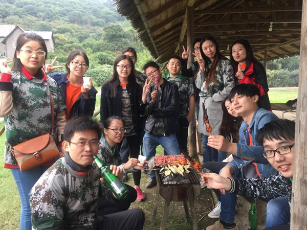 玩游戏时间过得非???,一会到中午了,午餐准备了非常丰富的烧烤活动,公司准备了各种各样的食材,好多我喜欢吃的羊肉串以及金针菇,但是在烧烤的过程中竟然看见有人烤辣椒,我真的是次见,我心想这好吃吗?于是我也自己烤一个,竟然出乎意料的好吃。