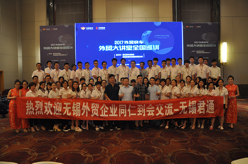 2017.7.14下午,烈日当空,炎炎夏日,无锡滨湖万达喜来登3楼400多位慕名而来的外贸企业从业者、外贸高端精英人才因外贸结缘,汇聚一堂,都为了如何开启外贸之路,接下来如何更好地做好外贸? 为帮助无锡中小企业由“内销—外销”的成功转型升级,无锡君通联合杭州思亿欧组建了专门的外贸网络营销理论和实践专家团队,推出了纯公益性质的无锡杯“jac外贸大讲堂”,旨在为广大外贸企业带来新的外贸营销理念和实践知识,也针对外贸实操过程中的普遍问题提供解决方案,给广大外贸企业带来福音。本次会议由外贸快车无锡服务中心——无锡君通科技服务有限公司承办,活动一经确认举办,吸引了众多外贸企业家和外贸实操人员的踊跃报名,据统计,网上报名人数近达500余人,可见无锡的中小企业有无穷大的提升潜力与进步空间!