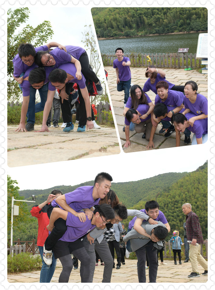 “七手八脚”则是考验了技巧和体力,每组的所有成员的手和脚必须按照要求的数目着地,从易到难,不断变换着手脚的数目,拼速度和时间。团队里必须要有体力担当着,因为难度升级后就会呈现“叠罗汉”,来组图瞧瞧,不禁让人捧腹大笑