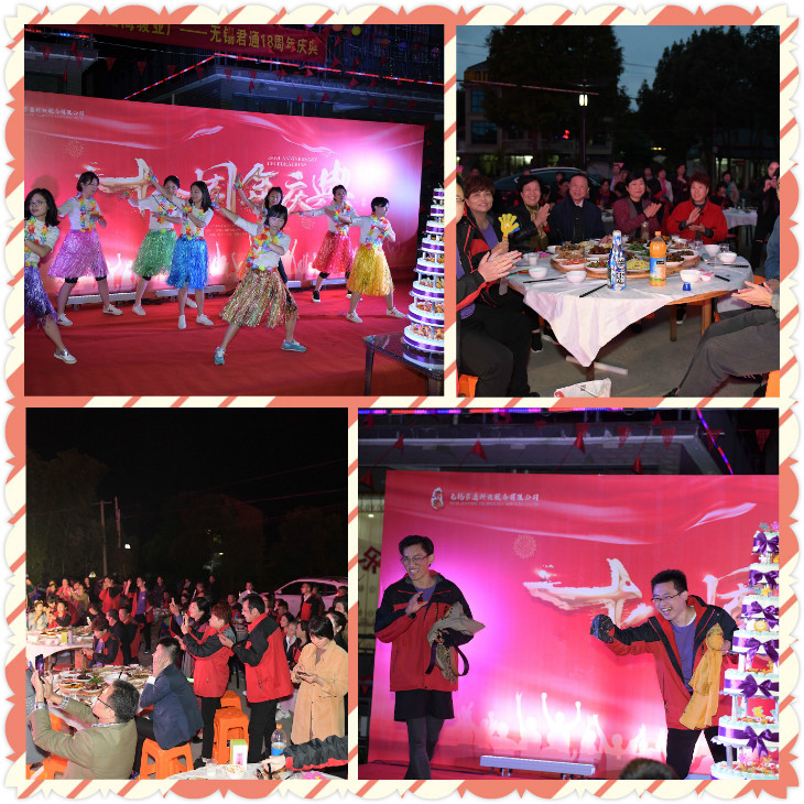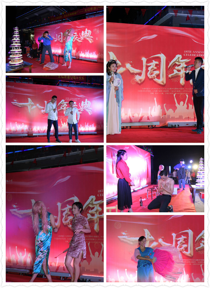 活动过后伙伴们都换装啦,经过一番打扮,美女帅哥们齐上阵,来到签名墙签到留影,这气场阵势一点不输明星啊!签到留影完毕,我们的镜头聚焦到主会场---18典的晚会现场。璀璨夺目,星光熠熠的舞台场景增添了庆典的气氛。一波又一波的高潮,久久未能平息,才子佳人们的载歌载舞,市场部的独舞,团舞,客服热辣的草裙舞,新晋团队歌王康总,谈经理,朱经理的献唱; 吴老师夫妇的京剧表演以及还有来自远方的宁夏艺术团的张老师,因为被我们的庆典氛围感染,自发上来表演了一段京剧,把晚会的前半段推向了。康总精心准备的抽奖奖项也是掀起了一股热浪,设置了ipad作为奖项,虽说初秋的夜晚有点小凉,但是因为我们十八周年晚会的举办,引来了当地居民的围观,拍手称赞,使得大家觉得格外的温暖。客户的祝福视频看的让我们君通人感到自豪与感动,欢快的时光总是觉得时间很快,晚会在意犹未尽中结束,但是热度一直在持续。
