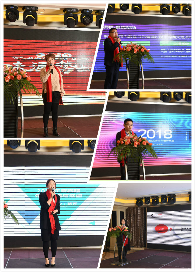 接下来就是我们的高管们做年终总结报告,首先是技术部的技术总监杜工,为整个部门的工作做了一个完整的数据分析以及2019年个人希望公司主要做好服务和品牌上,做到客户的满意是我们永恒的追求,同时还要继续保持君通在无锡市场的品牌影响力。接下来的是技术大咖顾工主要是围绕整个多媒体的大环境做了一个简短明了的报告,接下来是客服部经理刘苏对本部门的过去一年的工作做了总结和汇报,可以看出君通在思亿欧的年会上拿连拿两年的服务标杆中心不是白拿的,客服姑娘们的努力和敬业服务着我们的每一位客户,同时客服的姑娘们也在不断努力的提升自身的产品知识来更好的服务我们的客户,相信2019年有君通客服团队的坚强后盾,在一线拼搏的销售们大可撸起袖子加油干了,接下来是何淑琴代表人事部和行政部发言,对过去一年的人事招聘和行政管理工作的总结,对2019年人事招聘工作的规划,为君通注入新鲜血液是2019年人事和行政的重要的工作,还有就是市场部的大区经理赵经理和张经理分别对自己部门的员工和自己过去一年的业绩做了总结,同时也对2019年的业绩做了规划,相信在你们的努力下2019年业绩翻番不是问题,还有就是电销部的团队带领人叶晨和梁山小分队的带队人齐晓阳分别对自己部门去年一年的业绩做了分析和数据的解析,通过他们这些数据的分析,得出想要开单必须努力打电话积累意向客户,有了沉淀才有不断爆发的开单,2019年电销部有你们带队,开单不是问题,加油吧小伙伴们,在我们的掌舵人尹总的简短总结下,上午的年度报告总结大会结束了,让所有台下听报告的人都对2019年充满了期待。