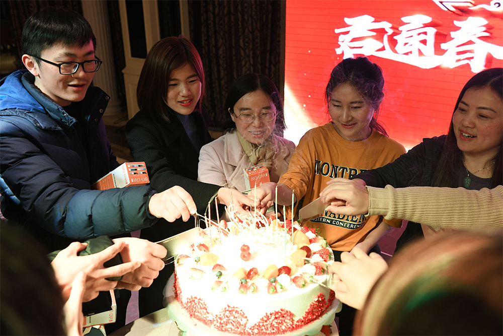 结束了晚会,开始了我们君通的年会晚宴和抽奖,当然在这里还有一个惊喜来了,那就是12月份和1月份过生日的小伙伴们过集体生日了,看那边的蛋糕早就引起了不少人的注意,当然要感谢康总尹总为大家精心准备的贺卡和礼品,真的是惊喜不断啊,下面的抽奖环节更是意想不到啊,没有想到一等奖和二等奖都在技术部,关键的是没有想到技术部的杨菲居然自摸现金奖,希望这么好的运气能够陪伴你们在未来的每都开开心心,快快乐乐,2019年我们和君通一起努力加油,做到更好的服务和品牌影响力!2019年我们携手同行,为梦启程!