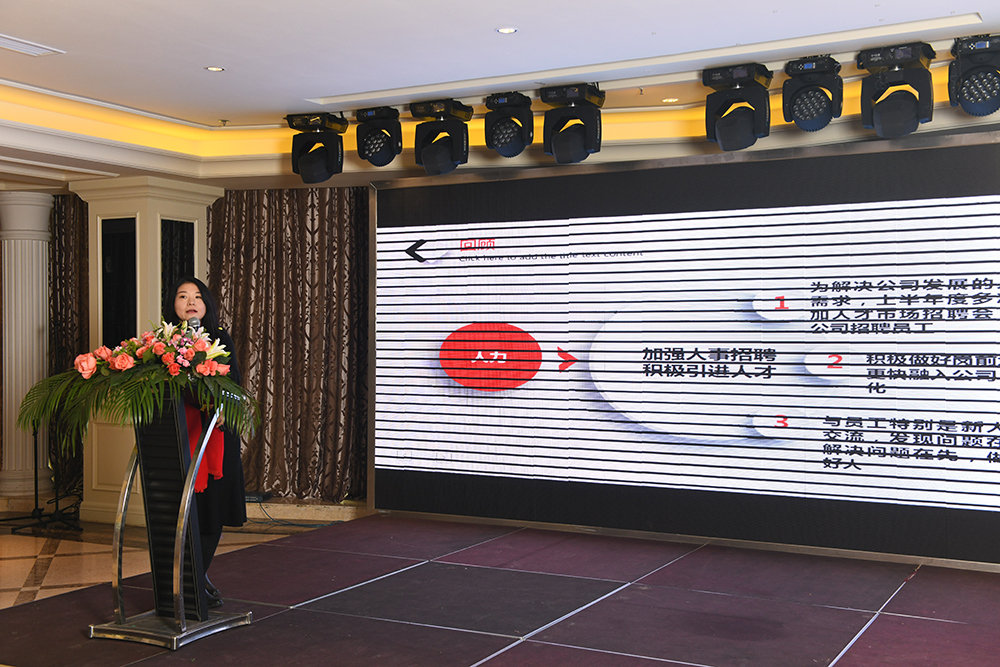 为各位领导进行总结与鞭策的,是我们的大家长尹总。她在肯定各部门工作之时,也为一些部门确立了更高的目标,提出了更高的要求。