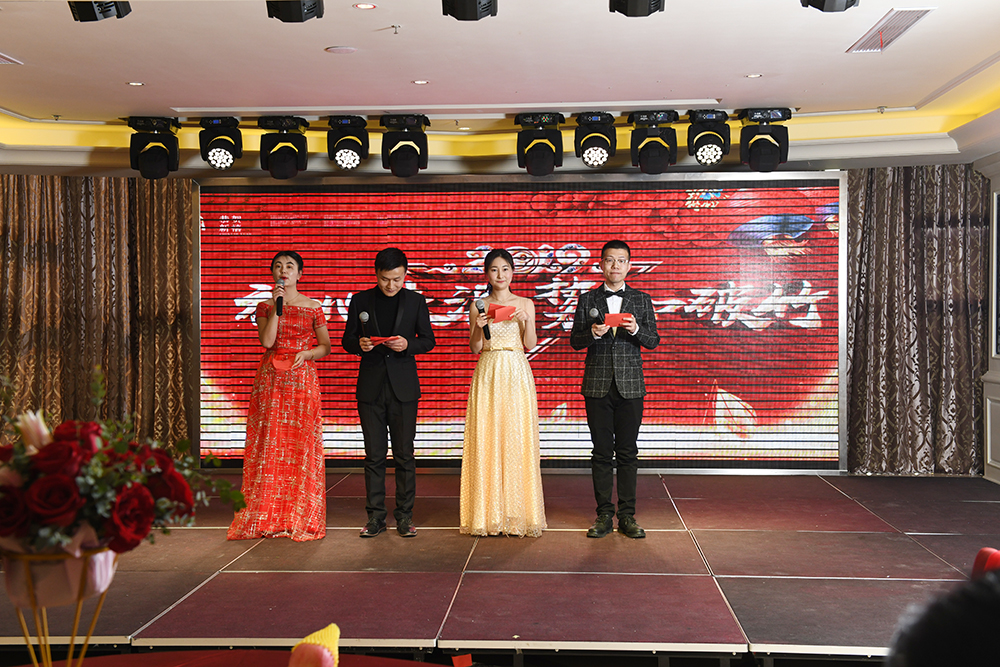 等四位主持人在台上站定,君通春节联欢晚会的气氛便悄然“争奇斗艳”了。