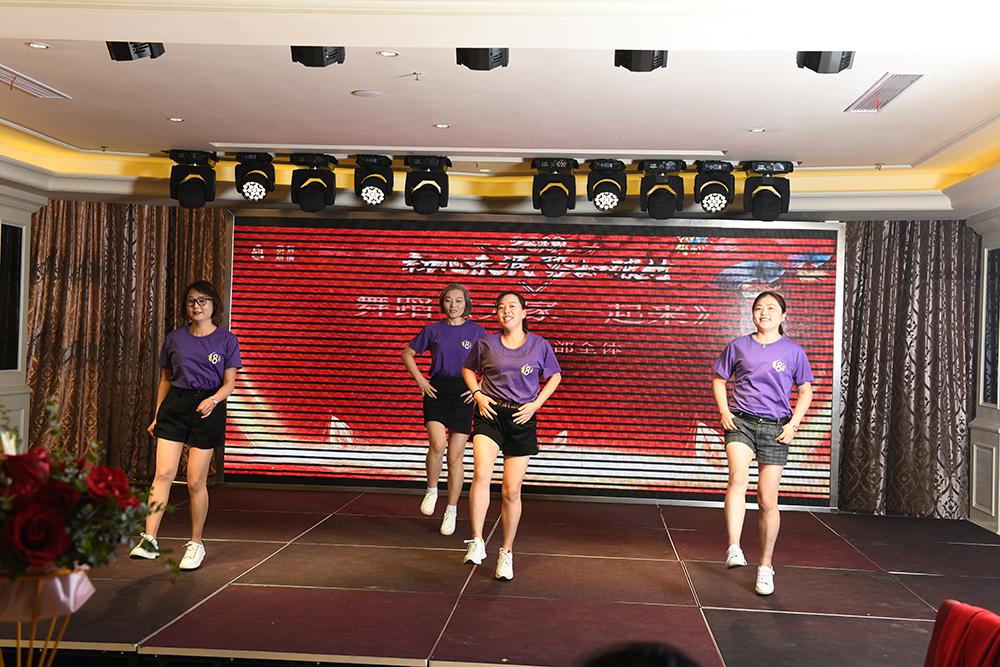 也正是因为如此,我想,能和市场部舞蹈一较高下的,是客服部门小姐姐带来的舞蹈《Good time》,时尚动感的音乐一起,整个会场的目光都被吸引了。
