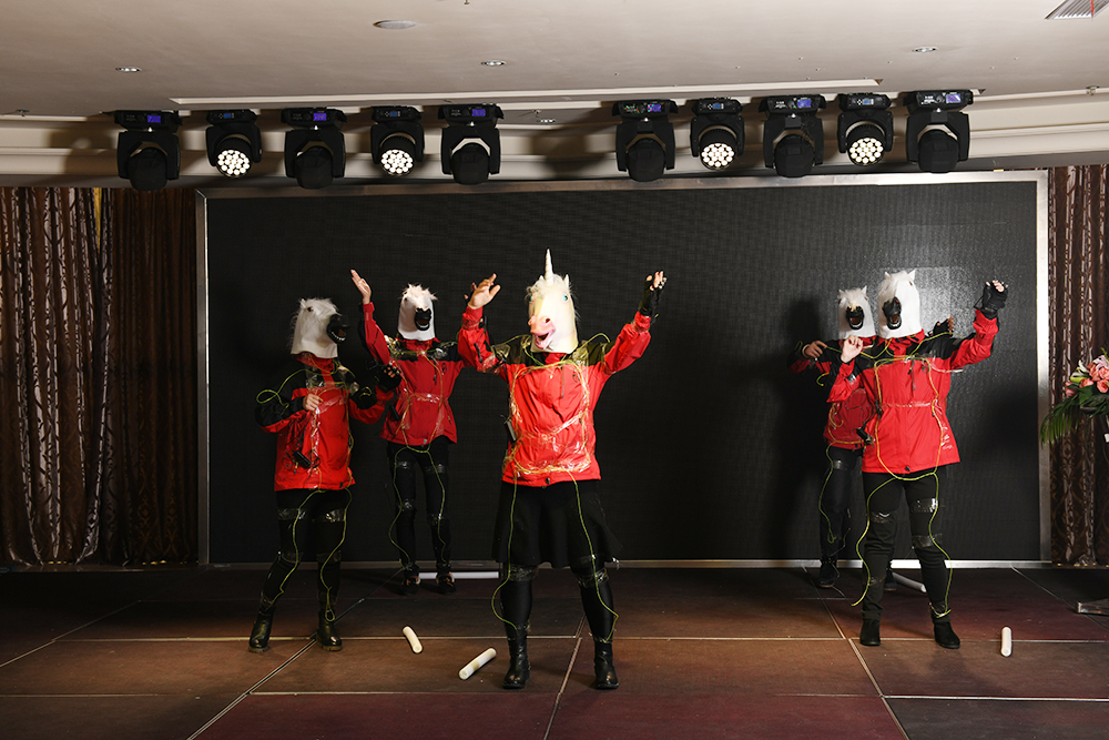 说到创意,行政部创意舞蹈《阳光彩虹小白马》也是不得不提:彩灯、白马与灯光融合,这个创意真的是给100分都不怕你们骄傲!