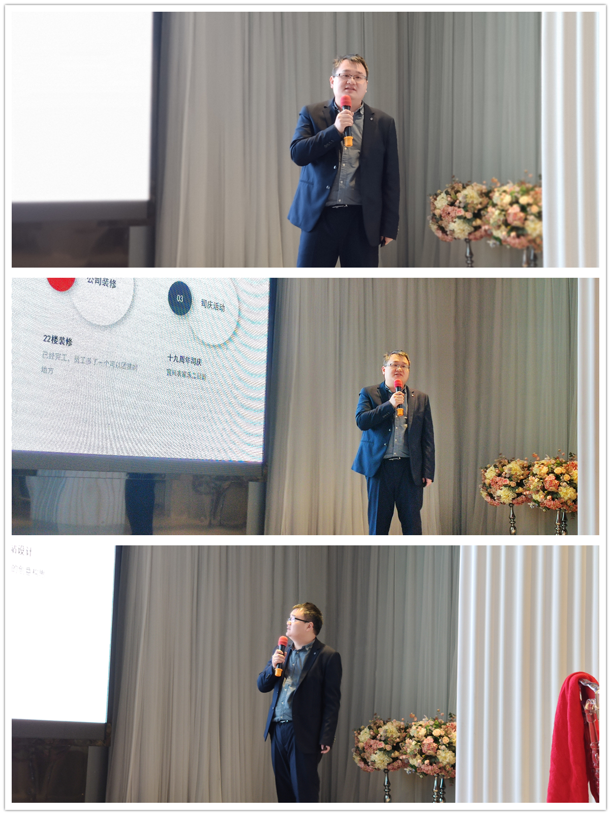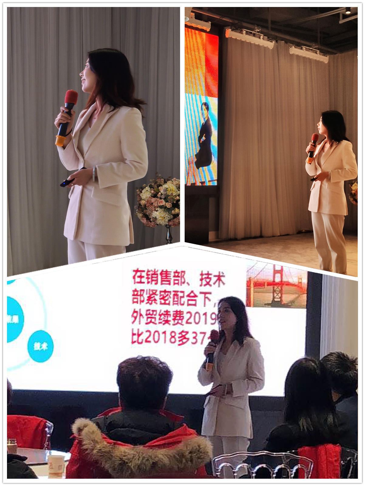 首先有我们君通的带领人康总为我们做2019年的总结和2020年的规划和展望,在公司全体销售人员的努力下完成了外贸快车2019年650万的目标,并同时做到了业绩全国外贸第四名,标杆服务商,个人业绩全国第二名,年度耕耘奖、五年陈,突飞猛进等奖项,