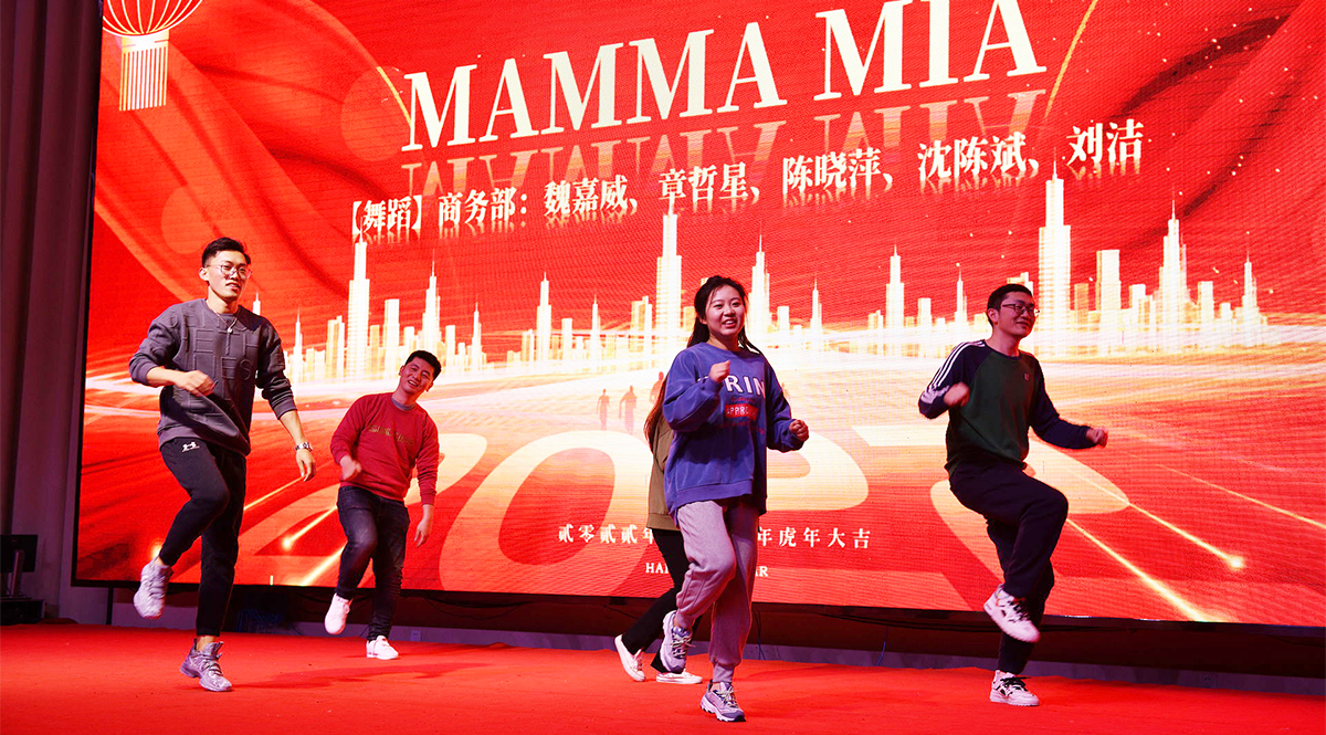 下面商务部魏嘉威、刘洁等带来【舞蹈】《MAMMA MIA》,嗨翻全场: