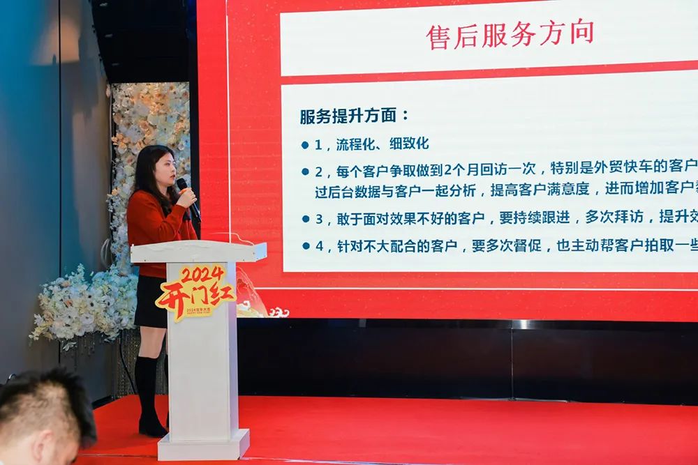 行政是公司的枢纽,行政部宋琦也为大家做年度总结和展望报告,为公司各个部门输送人才、提供后勤保障等,每个部门的职责人的精彩发言让大家对2024年都充满期待,深深地鼓舞到了伙伴们,更让大家看到了每个团队的增值空间!