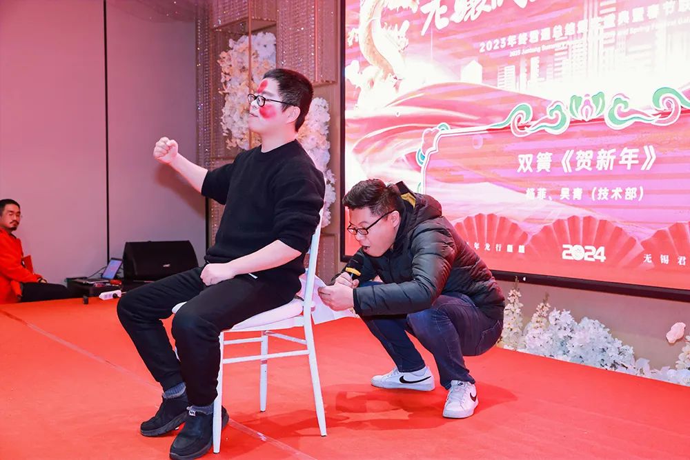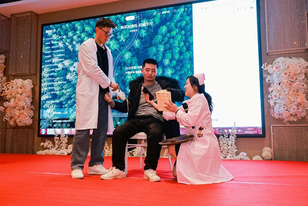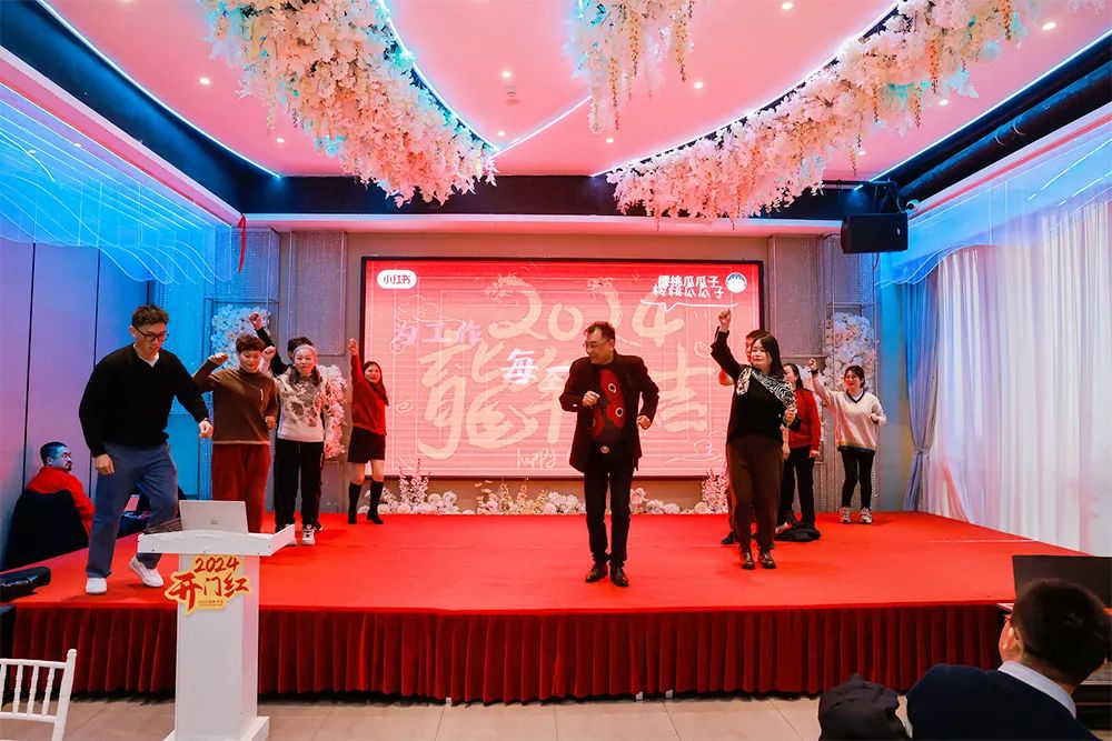 视觉盛宴后接下来就是我们一家人的年夜饭时光了,晚会的高潮最激动人心的抽奖和颁奖时刻到了,马上纪念奖、三等奖、二等奖、一等奖、特等奖、多名现金大奖一奖高过一奖都在等候着大家,话说能在年会上中奖可是喜上加喜的事,预示着他们2024年有足足的好运气,也鞭策他们在各自的岗位上发挥他们的光和热、大干一场!