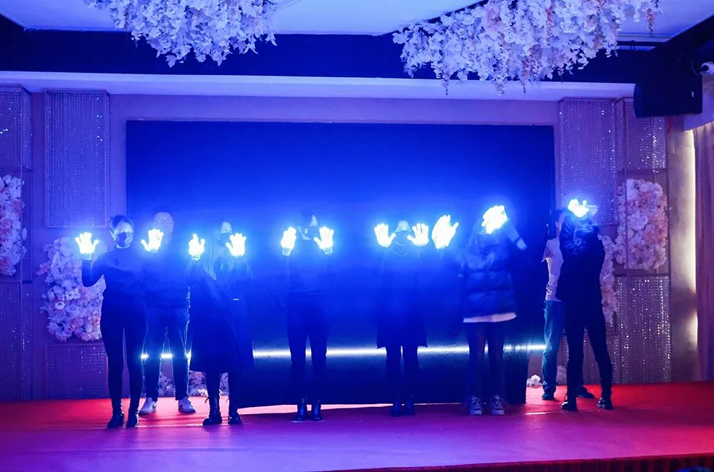 手影舞如同一颗颗璀璨的星星,在黑暗中闪耀出独特的光芒。它们以手部的灵动为媒介,通过灯光的映照,在夜空中编织出梦幻的图案和故事。每一个手势都是一次艺术的表达,每一次变化都是一次心灵的交流。客服部的美女们已经准备就绪了,接下来的这个节目让我们把现场的灯光暗下来,一起静静的欣赏客服部全体美女们为我们带来的手影舞《夜空中最亮的星》: