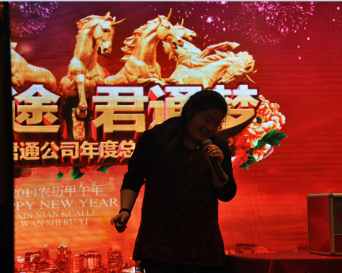 下午两点左右,君通公司春节联欢晚会准时拉开帷幕,每位员工都将他们精心准备的节目在舞台上尽情的展现给观众,他们的表演真的很精彩,让我们仿佛置身在中央春节联欢晚会的现场,真的太震撼了,无论是在歌唱方面,舞蹈方面还是在小品方面,每位演员的功底确实令人钦佩,表演一直持续到晚上六点左右,公司为的演员颁奖,不过很可惜,我们的几个节目都没能获奖,大家心里面都有着那么一点点小小的失落,毕竟大家精心准备了好长时间,不过没关系,只要大家能在一起,会感觉很快乐,很开心。随后便进入了晚宴环节,在晚宴期间,穿插了抽奖,奖品奖金颇多。